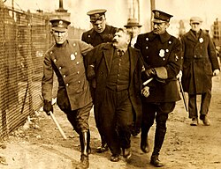 Mais les propriétaires des usines reprirent l’offensive. Soudain, une nouvelle série d’explosions de bombes secoua la ville. Cette fois, la police procéda à des arrestations massives de grévistes et, dans une nouvelle tentative de contraindre les ouvriers à retourner dans les usines, instaura un nouveau règne de terreur. Les grévistes arrêtés furent brutalement battus et des aveux leur furent extorqués par des méthodes d’interrogatoire au troisième degré. Ils furent placés en détention sous caution d’environ 450 000 dollars. Jusqu’alors, près de huit cents grévistes avaient déjà été arrêtés, pour une caution totale de près de 150 000 dollars. Bien entendu, personne ne pouvait payer cette nouvelle caution et les personnes arrêtées furent contraintes de rester en prison.