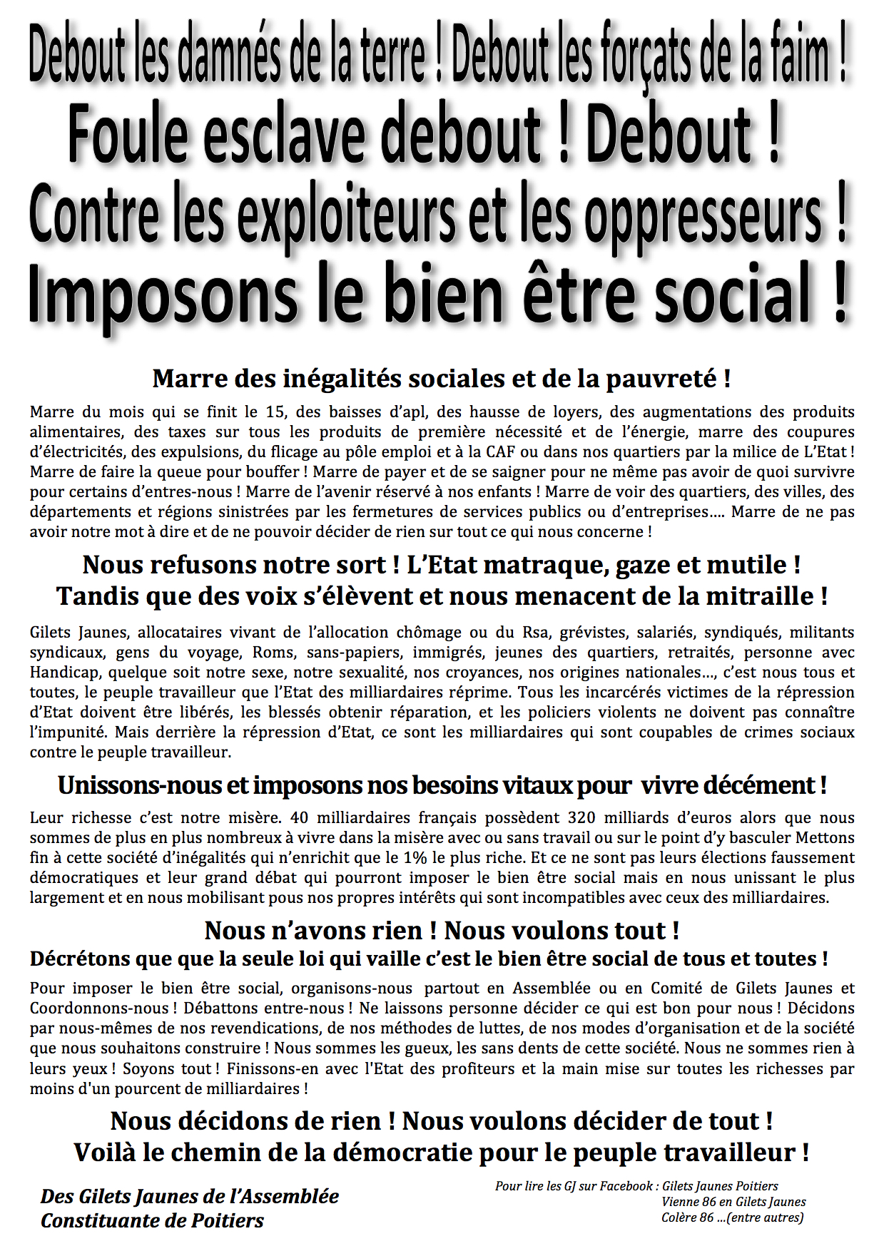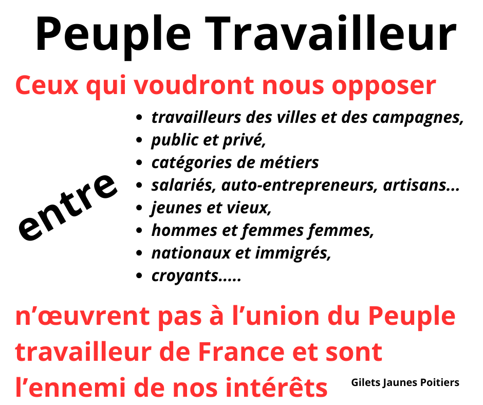 Non ! La constitution du peuple travailleur en future classe dominante est dès maintenant indispensable et l’affirmation de cet objectif doit devenir le but numéro un du mouvement qui doit être discuté dans toutes les assemblées des Gilets jaunes et dans tous les ronds-points.