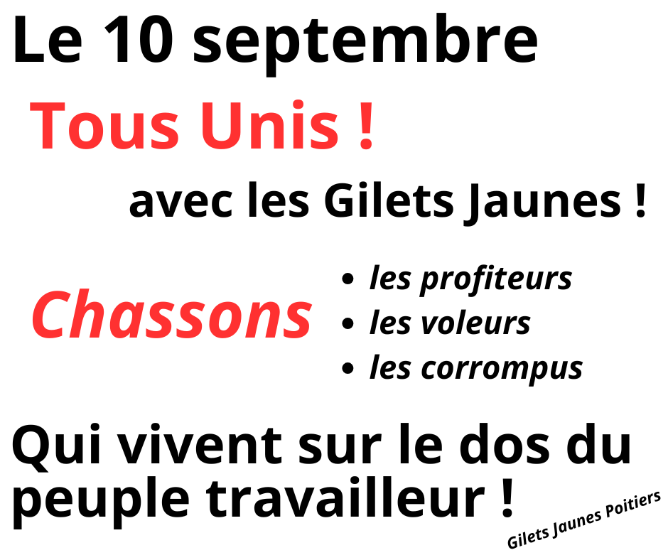 19. 10 septembre ! Quel objectif numéro un pour le mouvement des Gilets jaunes ?, 31 août, 06:27, par Laurence