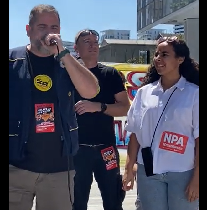 Au lieu de créer un Comité de soutien aux cinq sanctionnés, auquel le NPA-R, SUD, Coquerel pourraient adhérer, le NPA-R à l’air sur cette photo de passer sous les fourches caudines de LFI, "forcé" par SUD :