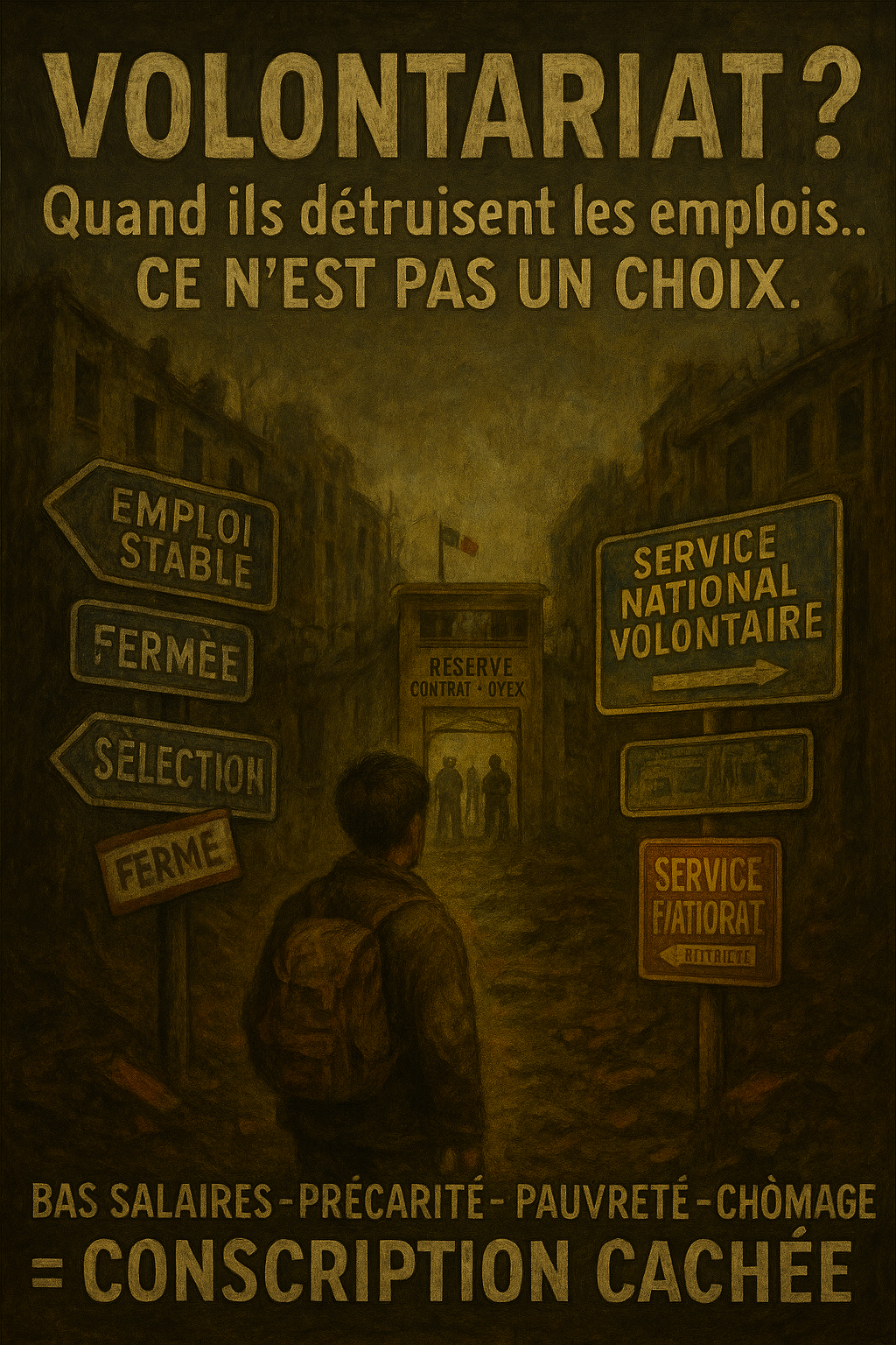 https://contre-attaque.net/2025/11/28/fuite-en-avant-service-militaire-pour-la-jeunesse-manuel-de-survie-pour-la-population/