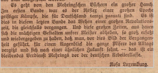 Rosa Luxemburg schreibt irtümlich vom IV. Band des von Franz Mehring herausgegeben Nachlasses von Karl Marx ...