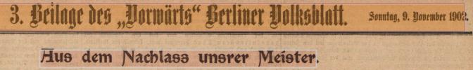 Traduction de la référence : article Aus dem Nachlass unserer Meister, signé Rosa Luxemburg, pages 1-2 du Supplément numéro 3 du Vorwärts, numéro 263 du 9 novembre 1902.