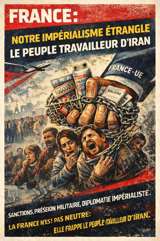 La pire dictature du monde n’est pas iranienne mais impérialiste. La plus grande cause de guerre mondiale n’est pas iranienne mais impérialiste. Le plus grand risque d’emploi d’armes thermonucléaires n’est pas iranien mais impérialiste. L’oppression qui fait le plus de victimes n’est pas iranienne mais impérialiste. L’alliance armée la plus dangereuse actuellement pour tous les peuples, y compris iranien, américain et israélien est celle qui bombarde actuellement l’Iran. Le plus grand danger de mort pour le peuple iranien, qui vient se rajouter et non se soustraire de celui causé par la dictature des Ayatollahs, c’est celui des bombardements des USA et d’Israël. Ils frappent les maisons civiles, ils frappent les écoles et les hôpitaux, ils prétendent ne frapper que le régime mais c’est le peuple qui ramasse les coups, les morts, les blessés, les destructions, qui paie le prix !