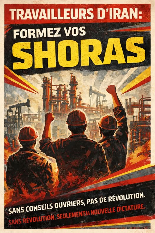 Il n’y aura pas de paix, pas de sécurité, pas de droit, pas de justice, pas de bien-être, pas de liberté pour aucun peuple tant que l’impérialisme ne sera pas renversé définitivement et mondialement. Et la seule force capable d’éradiquer l’impérialisme, c’est le prolétariat révolutionnaire, à condition de s’organiser en masse et de manière autonome à l’égard des forces bourgeoises et réformistes et de s’unir ainsi à tous ceux qui se révoltent, à tous ceux qui souffrent, à tous ceux qu’on exploite et qu’on opprime, aux femmes, aux jeunes, aux petits artisans, aux petits commerçants, aux petits paysans, aux petits pêcheurs, aux petits taxis et camionneurs et on en passe. Ce sont les conseils du peuple travailleur, élus et révocables, issus d’assemblées souveraines et décisionnelles, qu’on appelle ces conseils du peuple travailleur des soviets, des comités et piquets de gilets jaunes, des chouras comme en Iran, des tanacs comme en Hongrie ou des MKS comme en Pologne, des labor commitees comme en Angleterre, des comités revolucionarios comme en Espagne, etc…