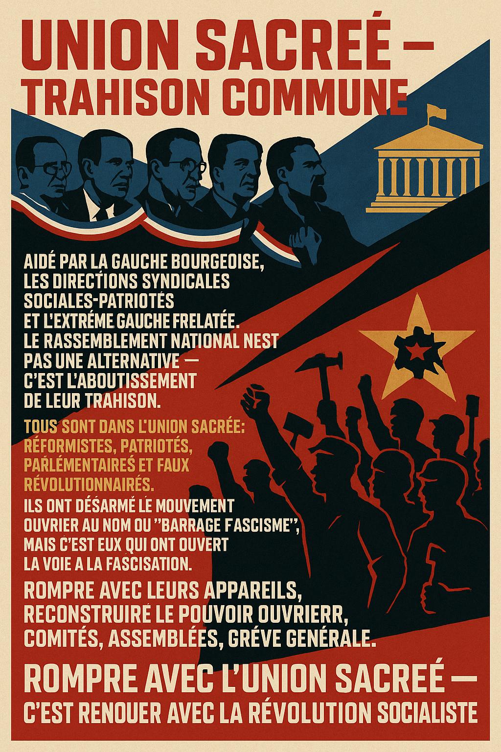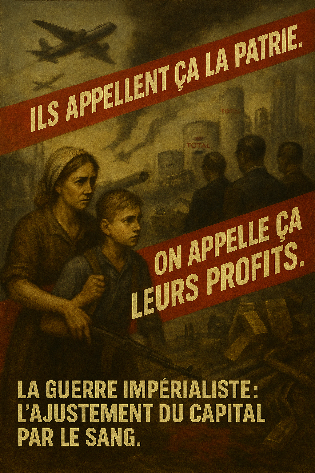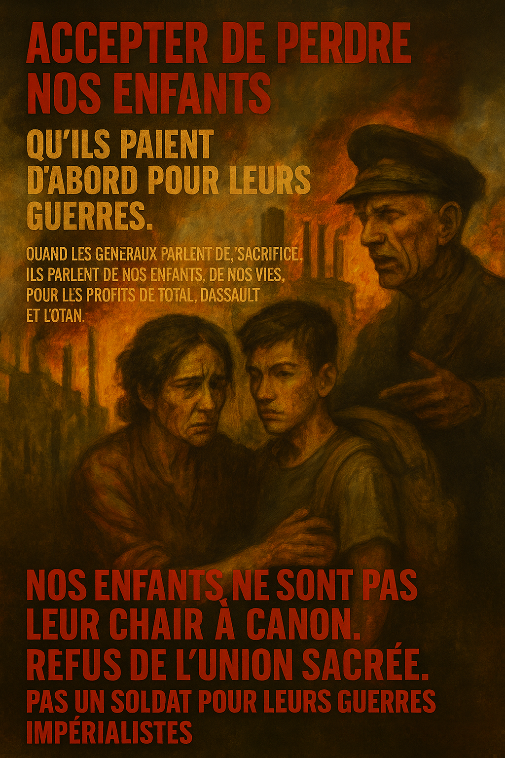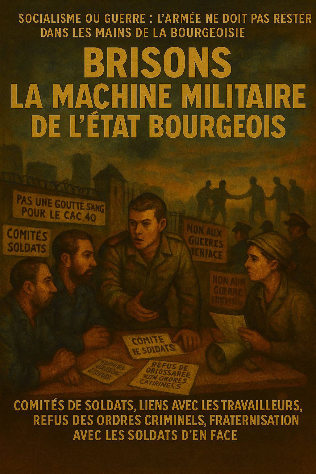 Aucun parti, aucun syndicat, aucune association ayant pignon sur rue n’entend s’opposer à la guerre impérialiste, ni même en dévoiler les buts réels et surtout pas appeler à la désobéissance, à la mutinerie, à la formation de conseils de petits soldats liés aux conseils de travailleurs, de jeunes, de femmes, de chômeurs, de retraités, de petits paysans, de petits commerçants et auto-entrepreneurs ruinés ou menacés, etc.