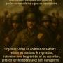 Quant à la réponse pour faire face à la guerre de Macron-Mandon, ne comptez pas sur les forces sociales et politiques réformistes ou opportunistes ou encore faussement radicales pour la donner : soldats, ne vous sacrifiez pas, ne donnez pas vos vies aux capitalistes et aux banquiers en même temps qu’aux va-t-en guerre et aux traines-sabres, prêts à tuer et même à vous faire tuer, sans un regret !
