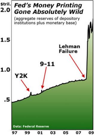 Dans leur approche ultra-conventionnelle, la plupart des économistes pensent que ces mesures d’austérité (avec les baisses des salaires et des retraites, ainsi que du pouvoir d’achat en général qui en sont la conséquence) pourront compenser le danger d’inflation associé aux injections massives de liquidités. S’il est possible qu’ils aient raison sur point dans le très court terme, le résultat final, lui, est tout-à-fait assuré : L’HYPERINFLATION. C’est d’ailleurs exactement ce qui s’est passé en Allemagne en 1923, où une période de déflation s’est vue succéder par l’hyperinflation, comme lorsque la mer se retire juste avant l’arrivée d’un tsunami.