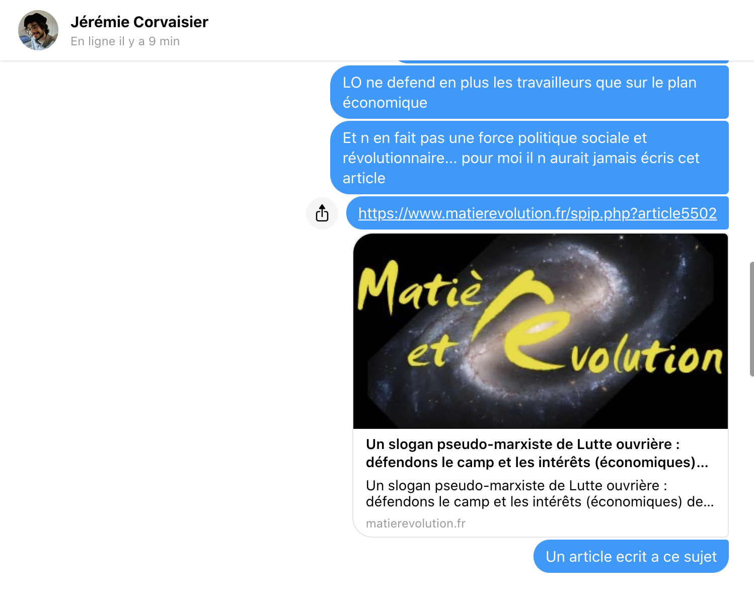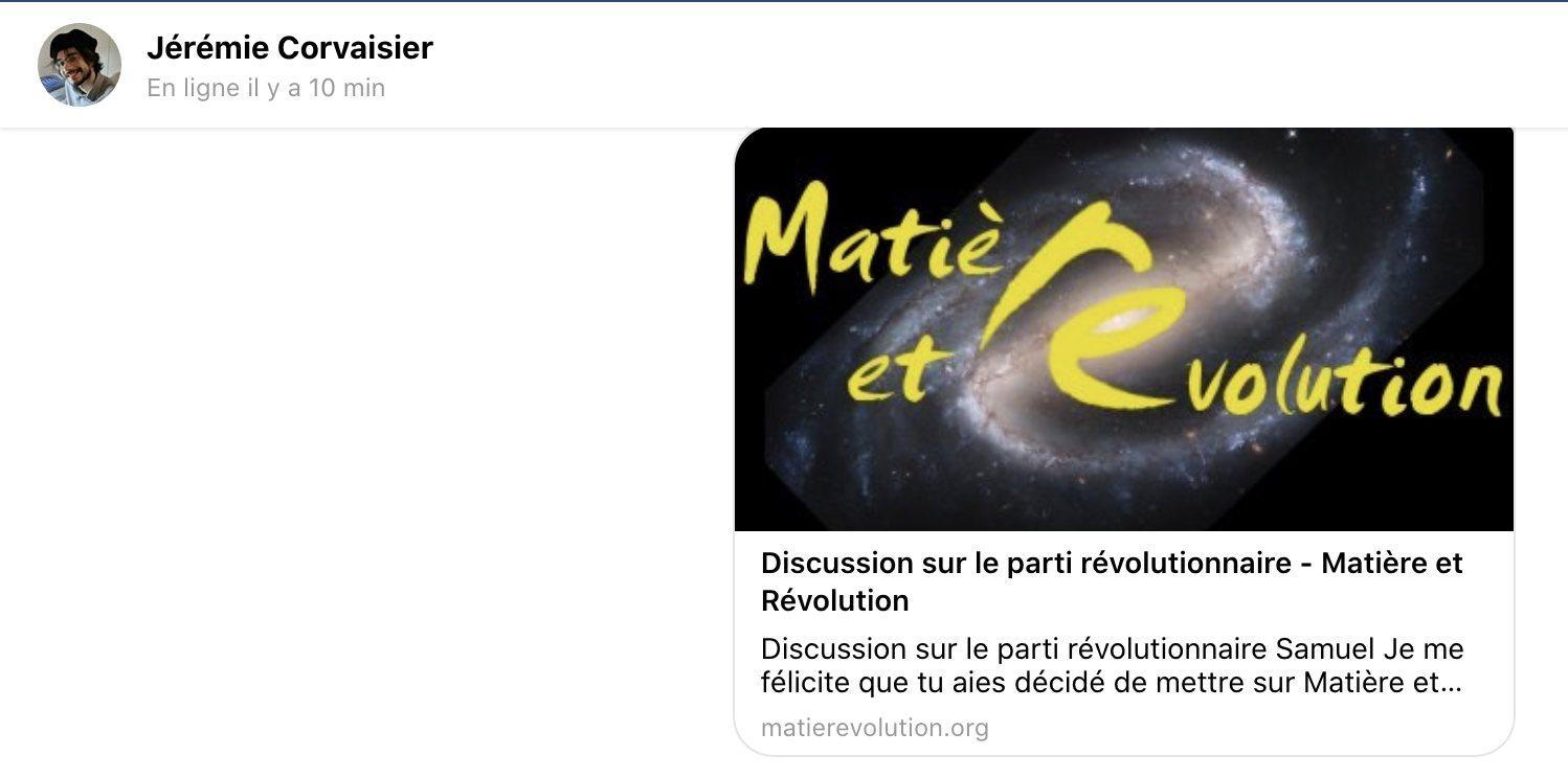 Les opinions de Matière et Révolution que discute Jérémie Corvaisier