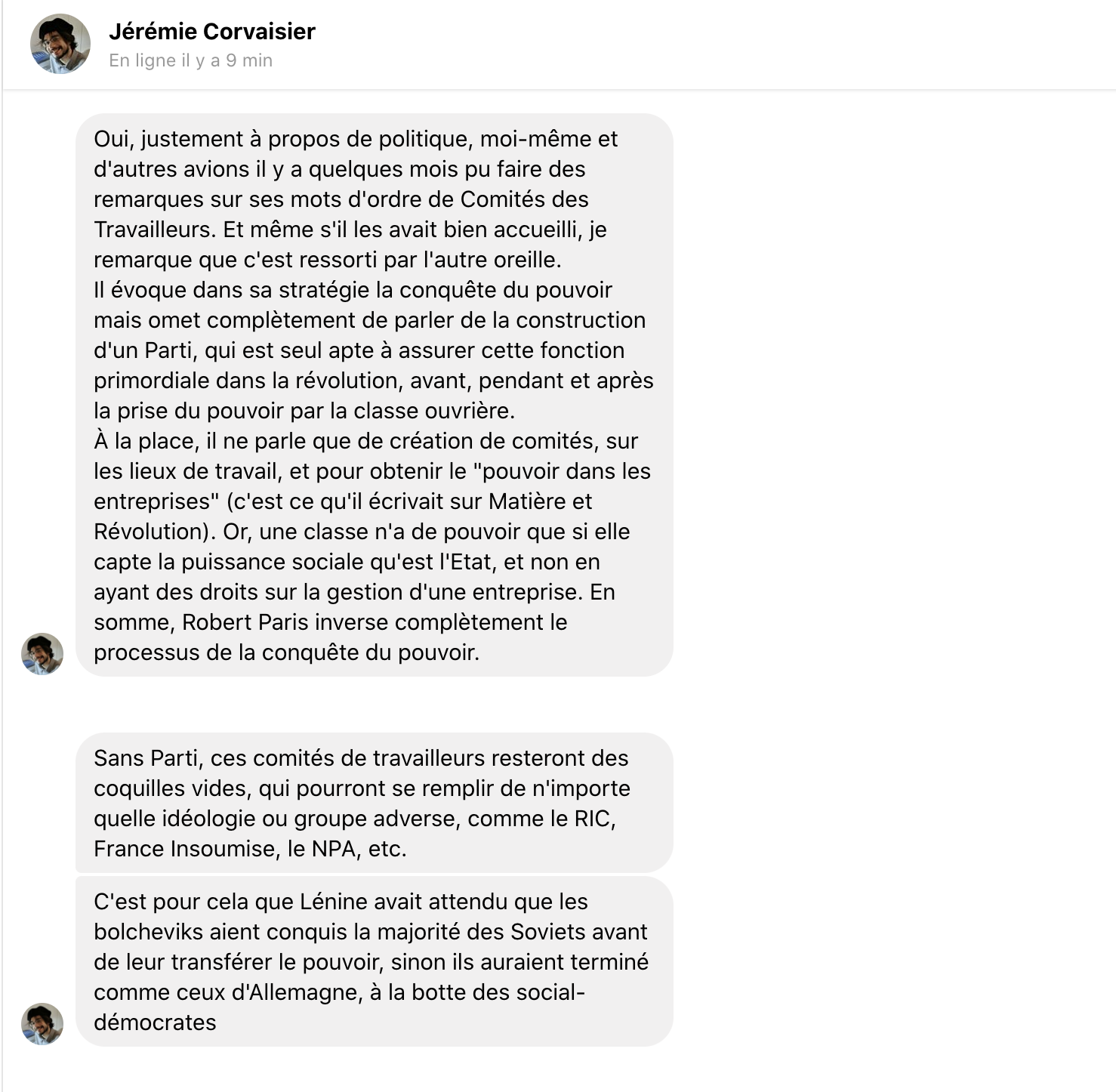 Robert Paris omet complètement le rôle du parti, nous dit Jérémie…