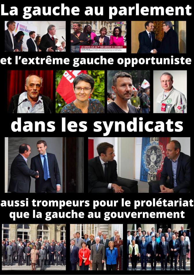 La gauche au parlement et l’extrême gauche opportuniste au syndicat sont aussi trompeurs pour le prolétariat que les réformistes de gouvernement