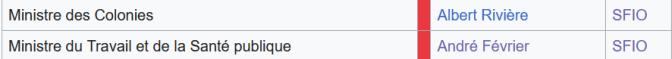 Albert Rivière est ministre des colonies (attention, un colonialisme sûrement "anti-fasciste" !), ex-ministre du Front populaire. Le 23 juin 1940 (5 jour après le fameux discours de de Gaulle), André Février, alors ministre socialiste du Travail et de la Santé publique, obtient une promotion, héritant du portefeuille des Transmissions en plus de ses attributions précédentes. La lutte anti-fasciste paye !