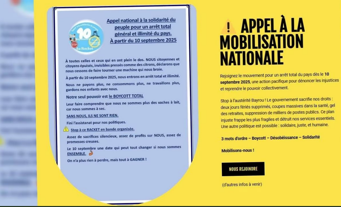 Mouvement du 10 septembre : 10 raisons pour diffuser "L’appel à la mobilisation nationale" et ses 3 mots d’ordre : Boycott - Désobéissance - Solidarité