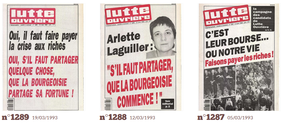 Deuxièmement, rappelons que du temps d’Arlette Laguiller, LO collait des affiches avec le slogan "Faisons payer les riches !" :