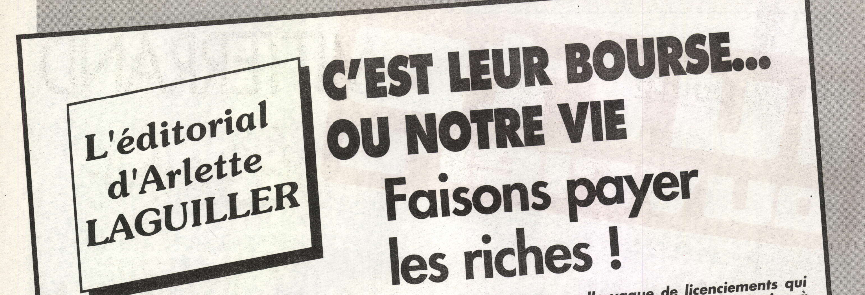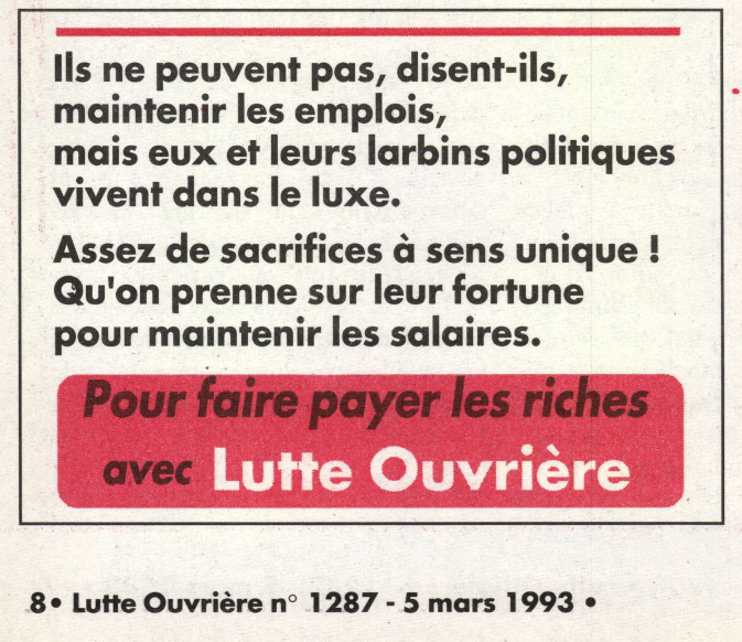 "Faire payer les riches" est la revendication qui initia la Grande Révolution de 1789, et ce slogan popularisé par le PC stalinien dans années 1930, était repris à juste titre par Lutte ouvrière régulièrement à l’époque d’Arlette Laguiller :